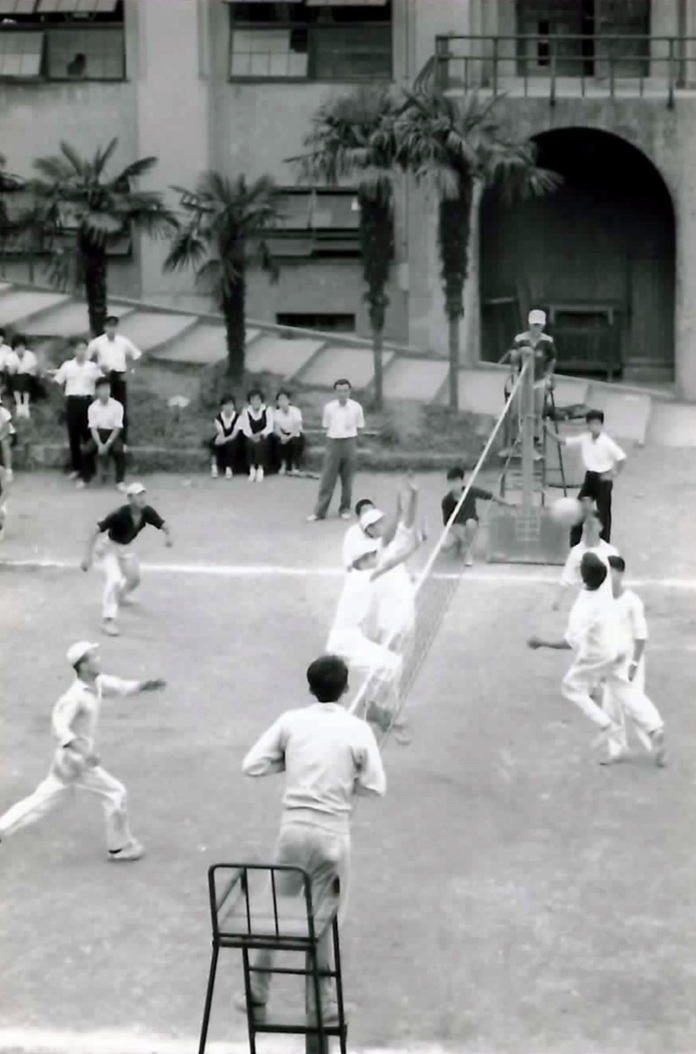 屋上からの中庭 6人制バレーボール中?